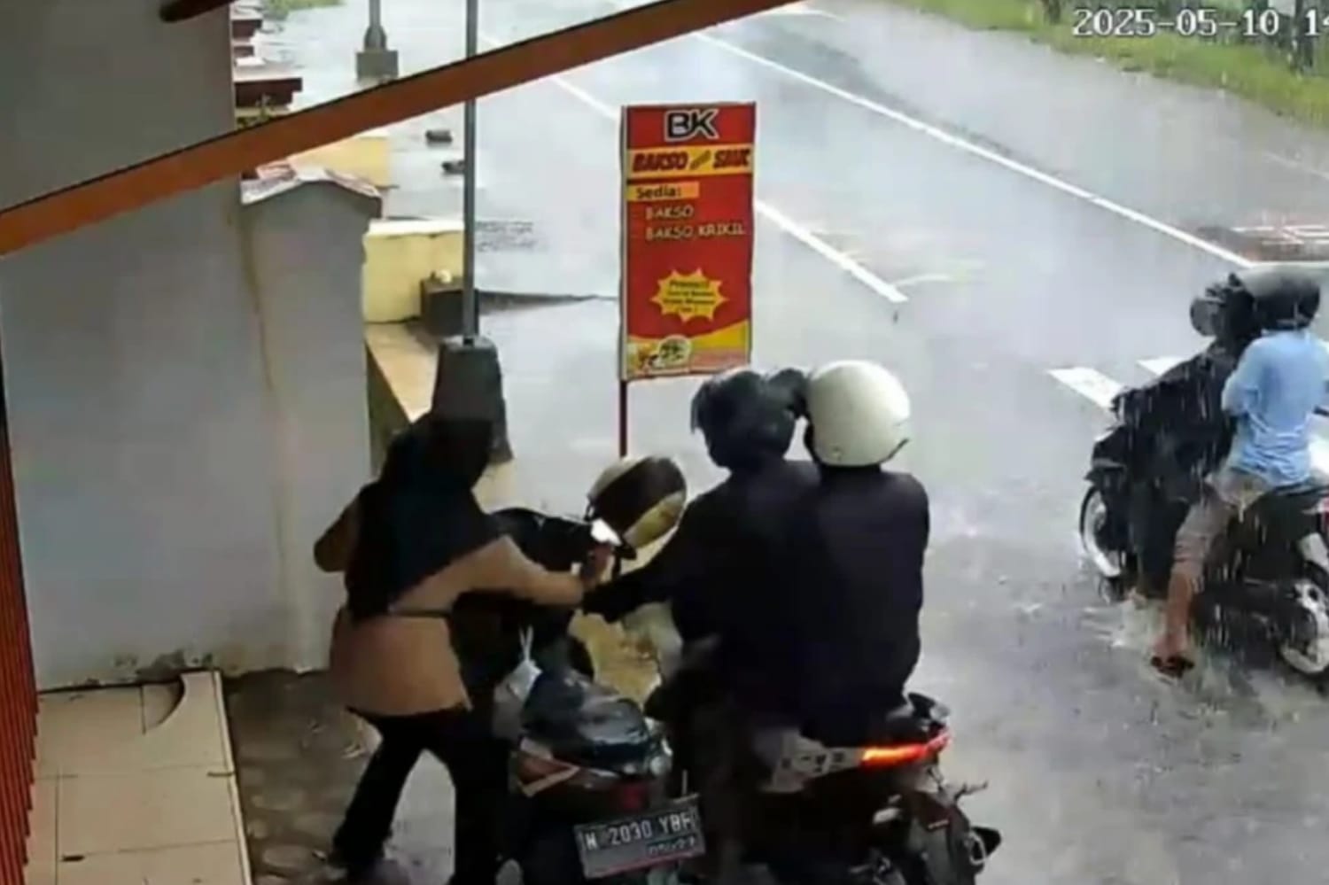 Rekaman CCTV dari warga setempat menunjukkan momen menegangkan tersebut, di mana beberapa pengendara dan mobil yang melintas tampak tidak berani menolong korban. Pelaku bahkan terlihat santai saat berbalik arah sambil mengendarai motor hasil curian.