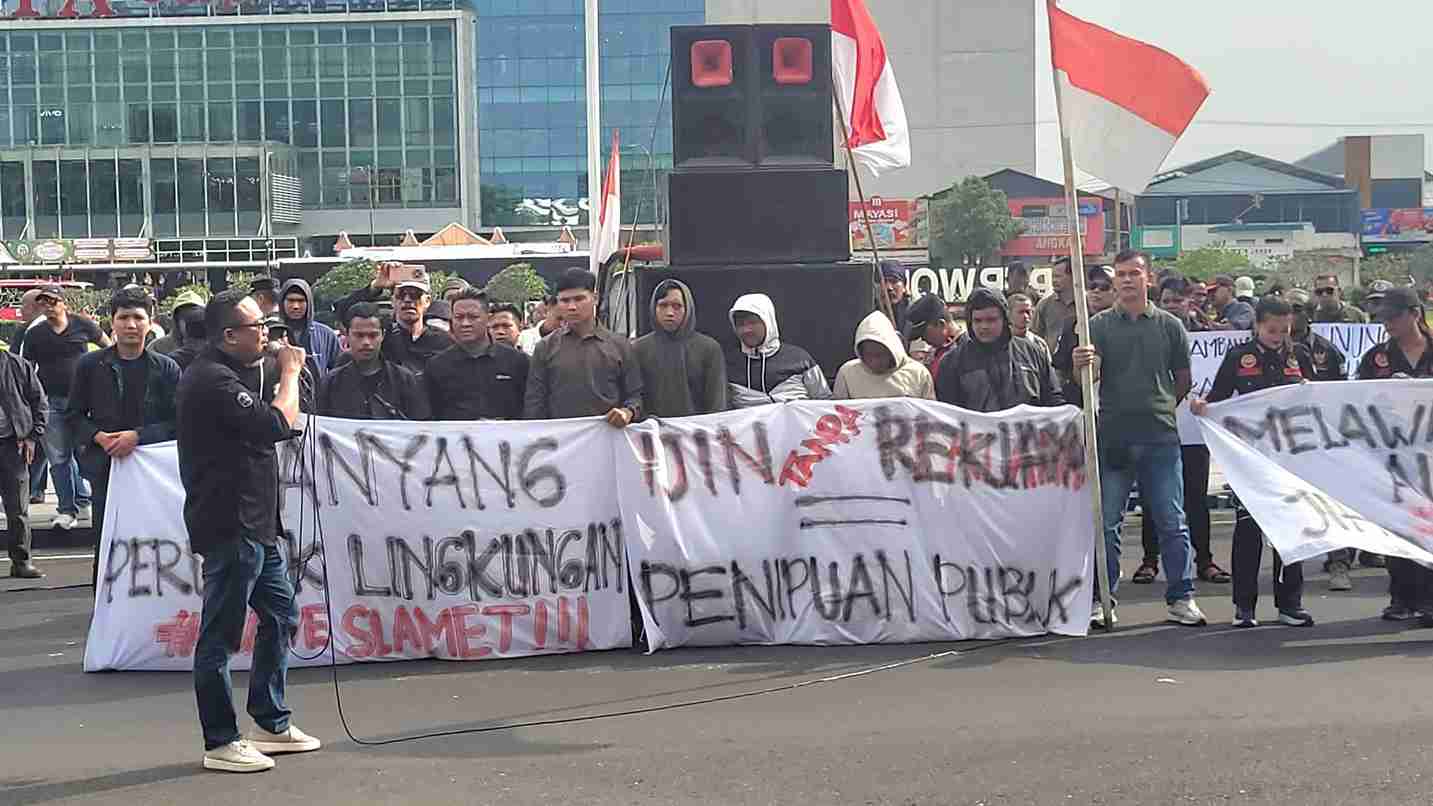 Aksi tersebut merupakan bentuk protes terhadap aktivitas penambangan batu dan pasir di kawasan lereng Gunung Slamet yang dinilai berpotensi merusak lingkungan dan mengancam keselamatan warga.