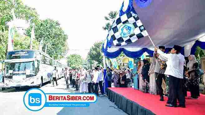 BERITASIBER.COM | LAMONGAN – Bupati Lamongan Yuhronur Efendi memberangkatkan jemaah haji Kabupaten Lamongan kloter enam dan tujuh menuju Asrama Haji Surabaya, di Pendopo Lokatantra pagi ini, Minggu (12/5/2024).