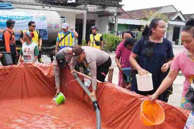 Seperti yang dilakukan oleh Polsek Kembangbahu, dengan menggandeng BPBD Kabupaten Lamongan bersama mendistribusikan bantuan air bersih ke warga terdampak kekeringan di Dusun Sukorejo Desa Kembangbahu Kecamatan Kembangbahu, Rabu (25/09/2024).