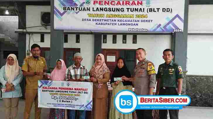 BERITASIBER.COM | LAMONGAN – Personel Polsek Deket sekaligus Bhabinkamtibmas Desa Deketwetan Aiptu Toni menggelar pengamanan dan monitoring pembagian BLT DD berlangsung di balai desa Deketwetan, Senin (03/06/2024).
