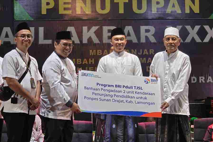 Penyerahan simbolis diserahkan secara langsung oleh Branch Manager BRI Lamongan Edy Hariyadi kepada pengasuh Ponpes Sunan Drajat KH. Abdul Ghofur disaksikan Wakil Bupati Lamongan Dirham Akbar Asara di acara puncak haul akbar mbah Banjar, mbah Mayang Madu dan Kanjeng Sunan Drajat di Ponpes Sunan Drajat Lamongan, Selasa (25/02/2025).