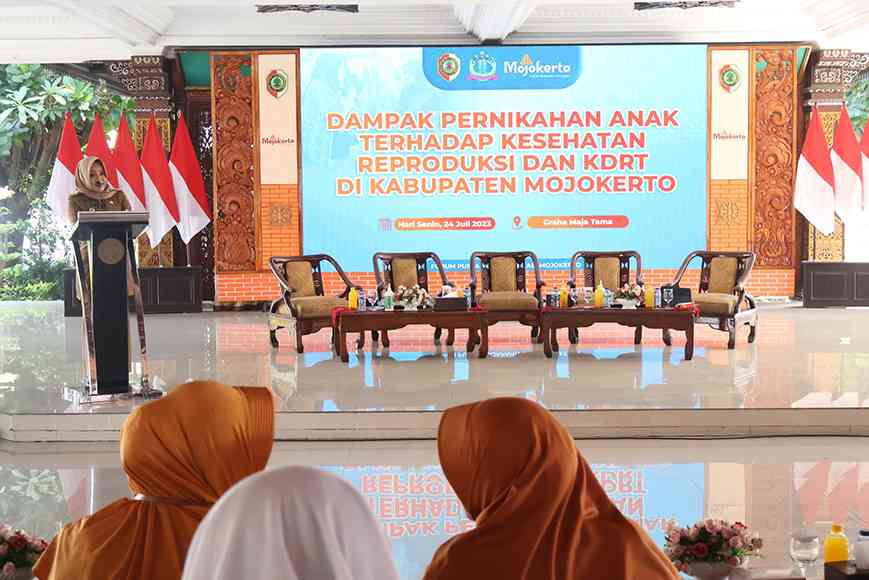 “Pada pernikahan dini pastinya sang ibu belum pada usia yang benar-benar siap secara fisik dan psikologis. Maka, bayi yang dikandung sangat berisiko terlahir stunting,” kata Bupati Mojokerto Ikfina Fahmawati saat membuka sosialisasi dampak pernikahan dini terhadap kesehatan reproduksi dan KDRT. Kegiatan yang diikuti puluhan pelajar SMP dan SMK digelar di Pendopo Graha Maja Tama, Senin (24/07/2023).