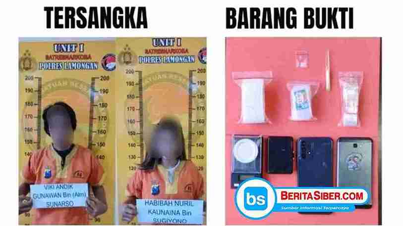 BERITASIBER.COM | LAMONGAN – Sepasang kekasih VAG (38) laki – laki warga Lingkungan Tegal Sari Kelurahan Brondong Kecamatan Brondong Kabupaten Lamongan dan HNK (23) perempuan asal Desa Sumbergirang Kecamatan Lasem Kabupaten Rembang ,Jawa Tengah digerebek anggota Satresnarkoba Polres Lamongan.
