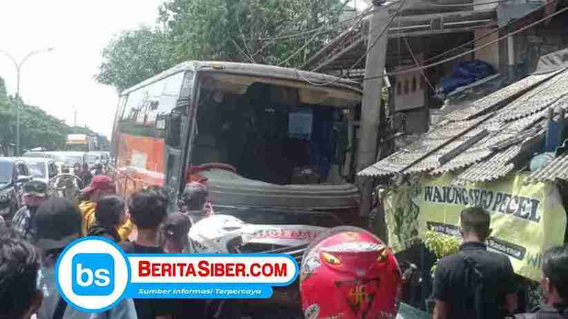 BERITASIBER.COM | LAMONGAN – Diduga mengalami rem blong, sebuah bus tabrak tiang listrik hingga warung pecel yang ada di Jalan raya nasional Babat – Lamongan Kecamatan Sukodadi, Kabupaten Lamongan, Minggu (11/02/2024).