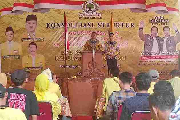 Hal ini disampaikan oleh Ketua DPD Golkar Lamongan Kacung Purwanto usai acara konsolidasi struktur pengurus desa, kecamatan hingga Kabupaten untuk pemenangan pasangan Yes-Dirham di kantor DPD Partai Golkar Lamongan.