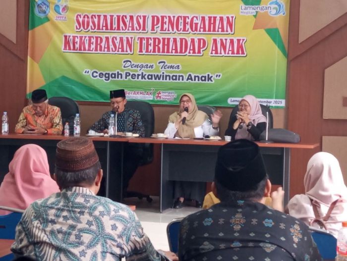 BERITASIBER.COM | LAMONGAN – Upaya menekan angka perkawinan usia anak terus digencarkan Pemerintah Kabupaten Lamongan. Melalui Dinas Pemberdayaan Perempuan dan Perlindungan Anak (DPPPA) Lamongan, digelar sosialisasi pencegahan kekerasan terhadap anak bertema “Cegah Perkawinan Anak” di Aula Candra Kirana, Rabu (24/9/2025).
