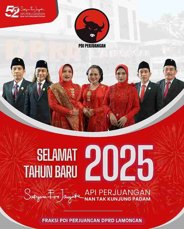 Kami Fraksi PDI Perjuangan DPRD Kabupaten Lamongan mengucapkan Selamat Tahun Baru 2025, Semoga kedepan membawa kesuksesan dan keberuntungan untuk kita semua.