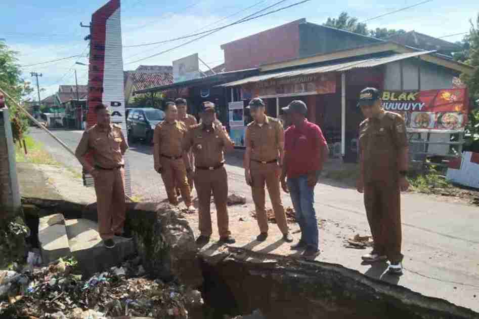 Kadis BMBK M Taufiqullah bersama staf memantau lokasi gorong – gorong ambrol didampingi Kadis PUPR Lampung Selatan yang diwakili oleh Kabid BM, Camat Kalianda Erman Suheri, Sekcam Kalianda, Munadi KUPT PU Kalianda – Rajabasa, Zakaria RP Kepala Desa Jondong dan Hasyim Adnan Kepala Desa Tengkujuh.