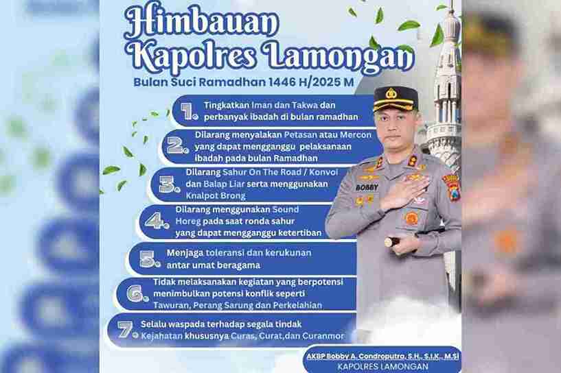 BERITASIBER.COM | LAMONGAN – Dalam upaya menciptakan situasi yang aman dan kondusif selama bulan suci Ramadan, Kapolres Lamongan memberikan imbauan kepada masyarakat untuk bersama-sama menjaga ketertiban dan keamanan di wilayah Kabupaten Lamongan.