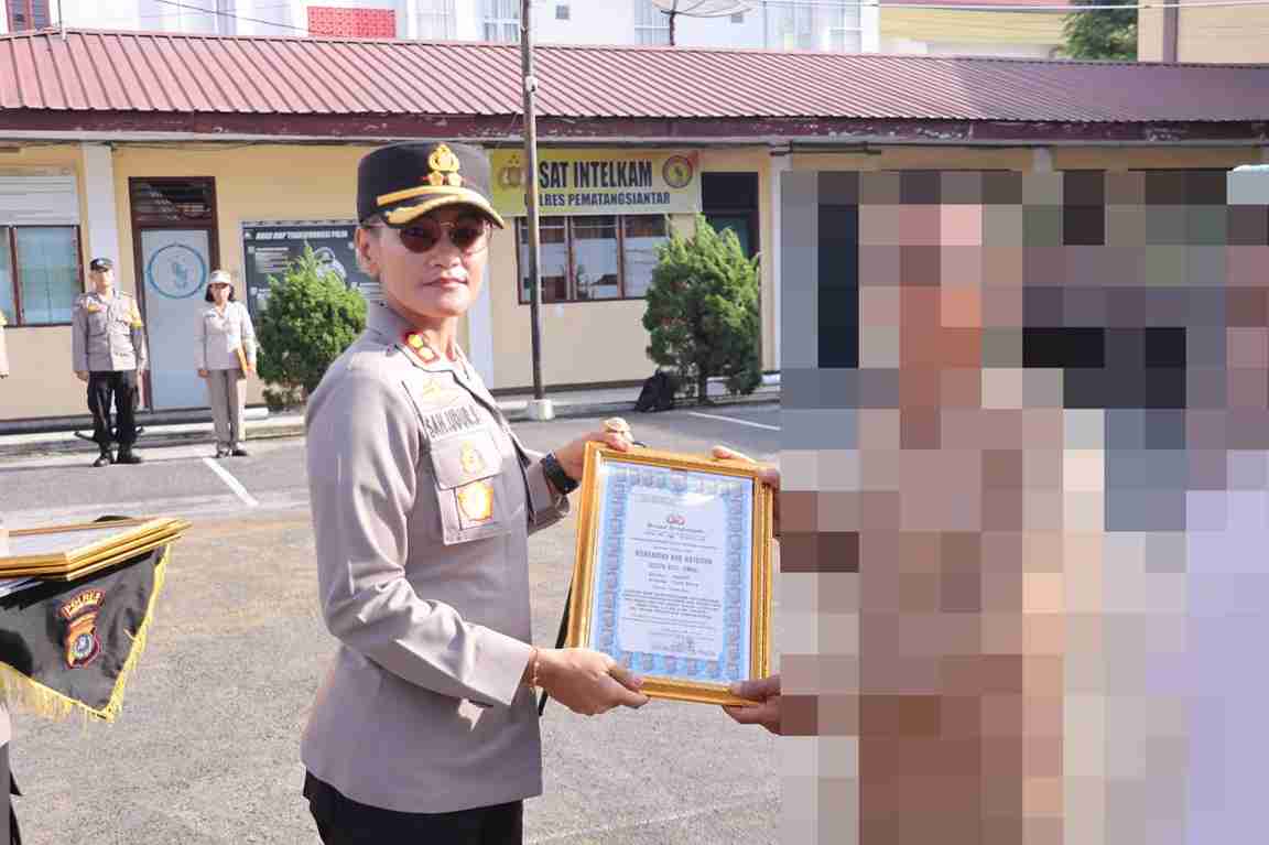 Penghargaan tersebut diserahkan langsung saat pelaksanaan Apel Jam Pimpinan yang digelar di Lapangan Mako Polres Pematangsiantar, Selasa pagi (28/4/2026).