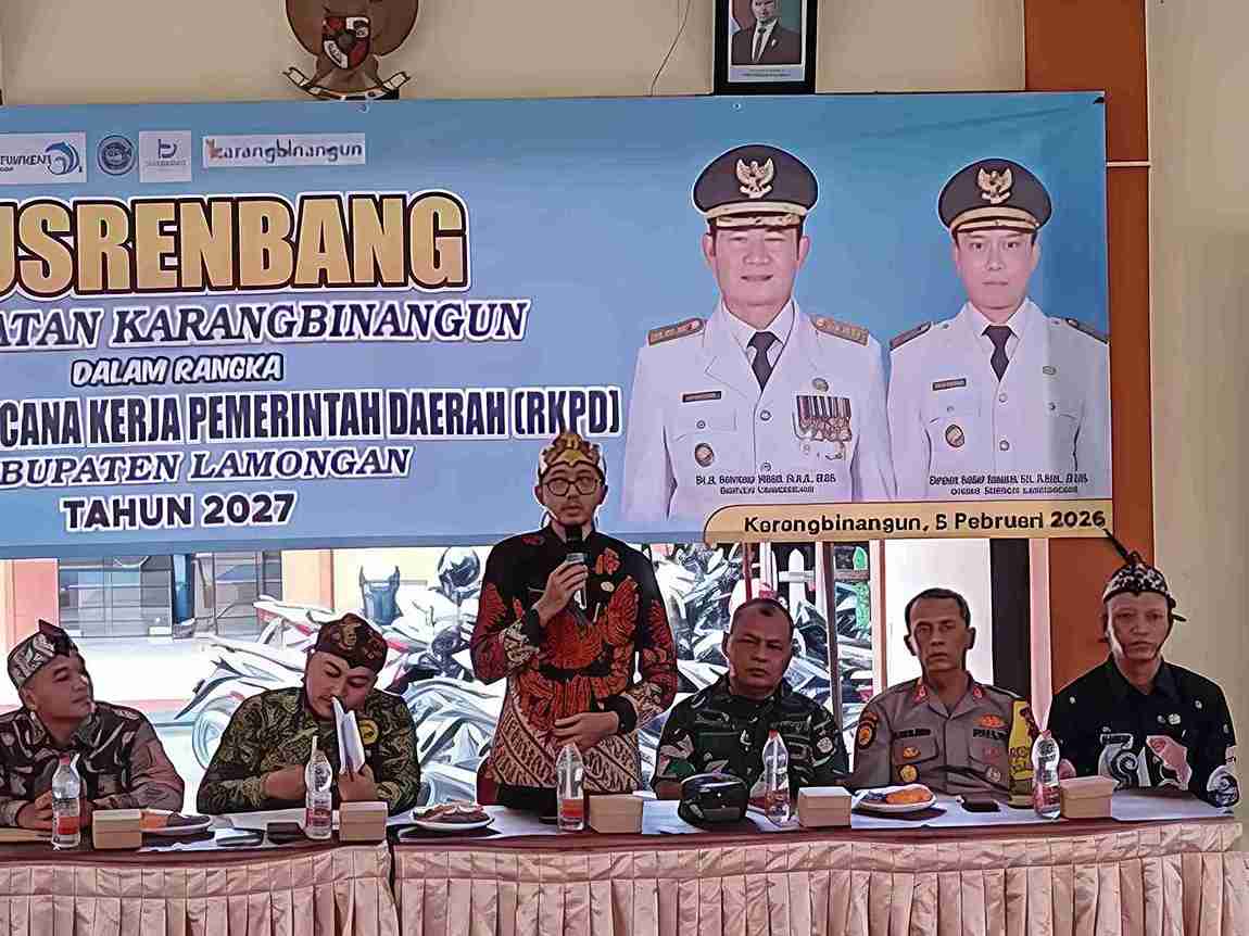 BERITASIBER.COM | LAMONGAN – Kapolsek Karangbinangun bersama unsur Musyawarah Pimpinan Kecamatan (Muspika) menghadiri kegiatan Musyawarah Perencanaan Pembangunan (Musrenbang) tingkat Kecamatan Karangbinangun yang digelar di Pendopo Kecamatan Karangbinangun, Kabupaten Lamongan, Kamis (5/2/2026).