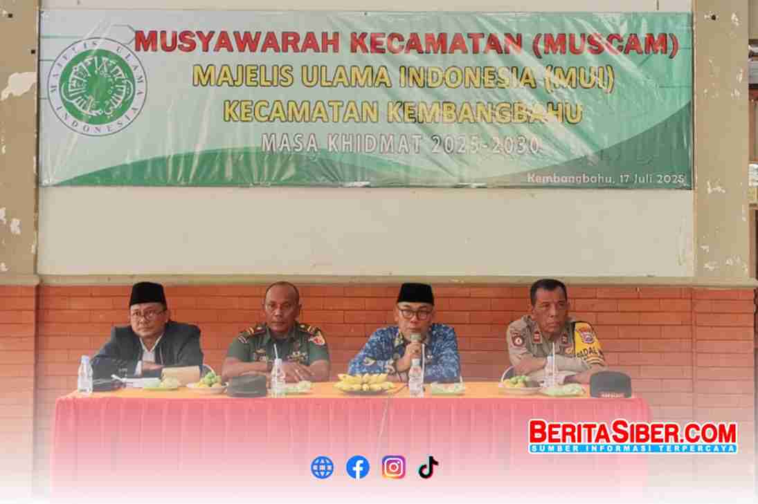 BERITASIBER.COM | LAMONGAN – Dalam upaya memperkuat sinergi antara ulama, aparat pemerintahan, dan unsur TNI-Polri dalam menjaga stabilitas sosial serta mengawal nilai-nilai keagamaan di masyarakat, Kapolsek Kembangbahu Polres Lamongan, IPTU Suprastiyo, menghadiri kegiatan Musyawarah Cabang Majelis Ulama Indonesia (MUI) Kecamatan Kembangbahu, yang digelar pada Kamis, 17 Juli 2025 bertempat di Pendopo Kecamatan Kembangbahu.