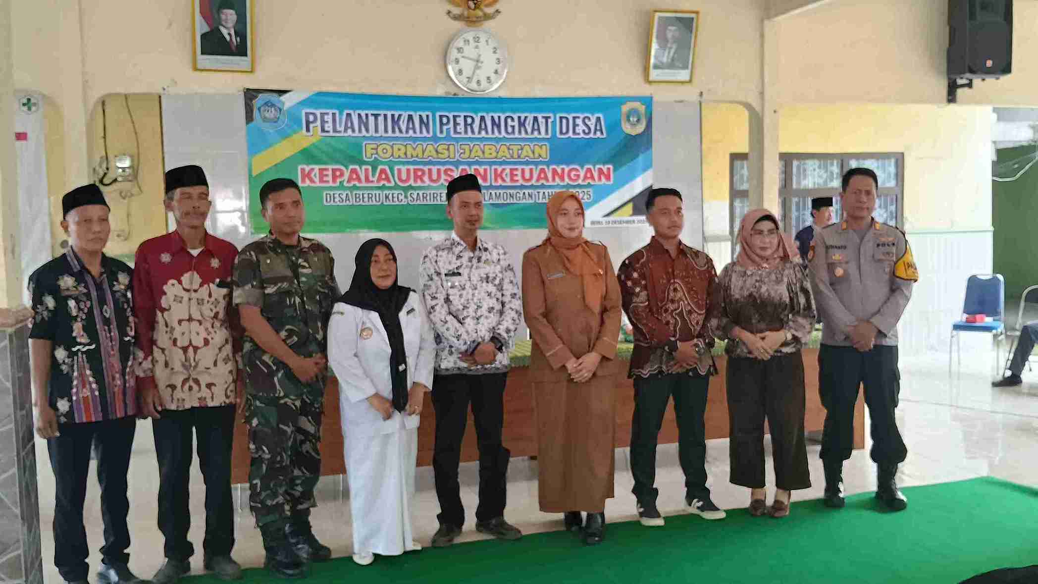 BERITASIBER.COM | LAMONGAN – Pemerintah Desa Beru, Kecamatan Sarirejo, Kabupaten Lamongan, resmi melantik dan mengambil sumpah jabatan Perangkat Desa Kaur Keuangan, Kamis (18/12/2025) pagi. Kegiatan yang berlangsung di Balai Desa Beru tersebut berjalan aman, tertib, dan kondusif dengan dihadiri unsur Forkopimcam Sarirejo serta tokoh masyarakat setempat.