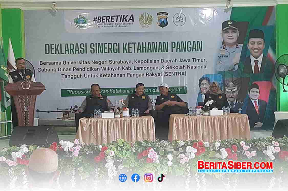BERITASIBER.COM | LAMONGAN – Kapolres Lamongan, AKBP Agus Dwi Suryanto, S.I.K., M.H., melakukan kunjungan kerja bersama tim dari Universitas UNESA dan tim dari Polda Jatim untuk membahas Ketahanan Pangan dan Program Pekarangan Bergizi di SMK Miftahul Ulum, Desa Solokuro, Kecamatan Solokuro, Kabupaten Lamongan, Jawa Timur.