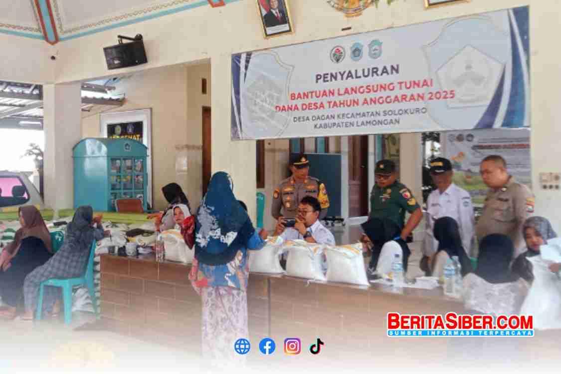 BERITASIBER.COM | LAMONGAN – Kapolsek Solokuro Polres Lamongan Polda Jawa Timur, AKP Asik Samsul Hadi, SH., MH, bersama jajaran Muspika Kecamatan Solokuro melaksanakan kegiatan monitoring dan pengawasan penyaluran bantuan beras Bulog kepada Keluarga Penerima Manfaat (KPM) di Balai Desa Dagan, Kecamatan Solokuro, Kabupaten Lamongan, Rabu, 23 Juli 2025.