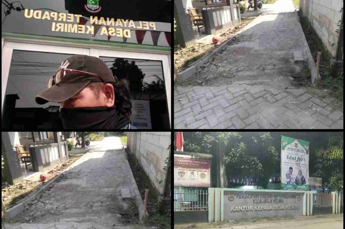 Kartusi, selaku Kabidkam DPP Perkumpulan Trisula Bakti Nusantara, mendatangi kantor Desa Kemeri untuk menanyakan anggaran kegiatan proyek paving blok yang berlokasi di samping rumah kepala desa.