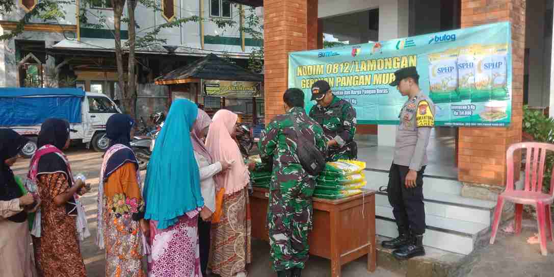 BERITASIBER.COM | LAMONGAN – Untuk membantu meringankan beban ekonomi masyarakat di tengah fluktuasi harga kebutuhan pokok, Kodim 0812/Lamongan melalui jajaran Koramil bekerja sama dengan Bulog dan Pemkab Lamongan, menggelar Gerakan Pangan Murah yang tersebar di beberapa titik strategis di Kabupaten Lamongan, Minggu (10/08/2025).