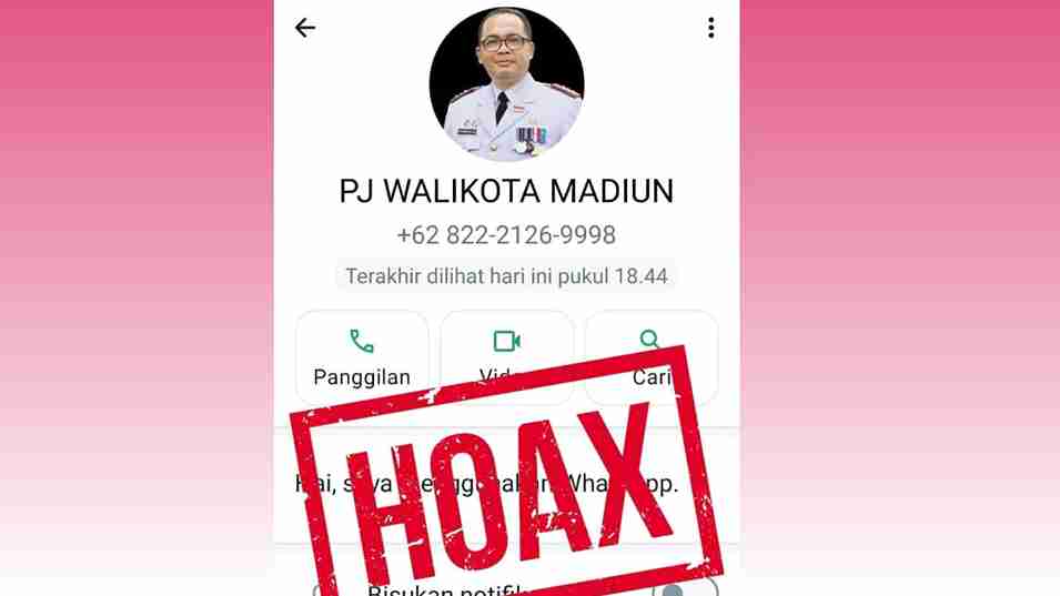 Baru tiga hari menjabat sebagai Pj Wali Kota Madiun, sudah ada upaya penipuan dengan menyaru sebagai Pj Wali Kota Eddy Supriyanto. Nomor WA Pj Wali Kota palsu itu didapati mulai beraksi, Kamis (02/05/2024).
