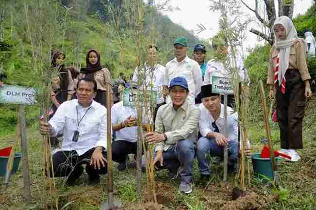 BERITASIBER.COM | TRENGGALEK – Dr. Hanif Faisol Nurofiq, Menteri Lingkungan Hidup Republik Indonesia memuji tutupan lahan di Kabupaten Trenggalek tinggi saat menanam Bambu, Sabtu (21/12/2024).