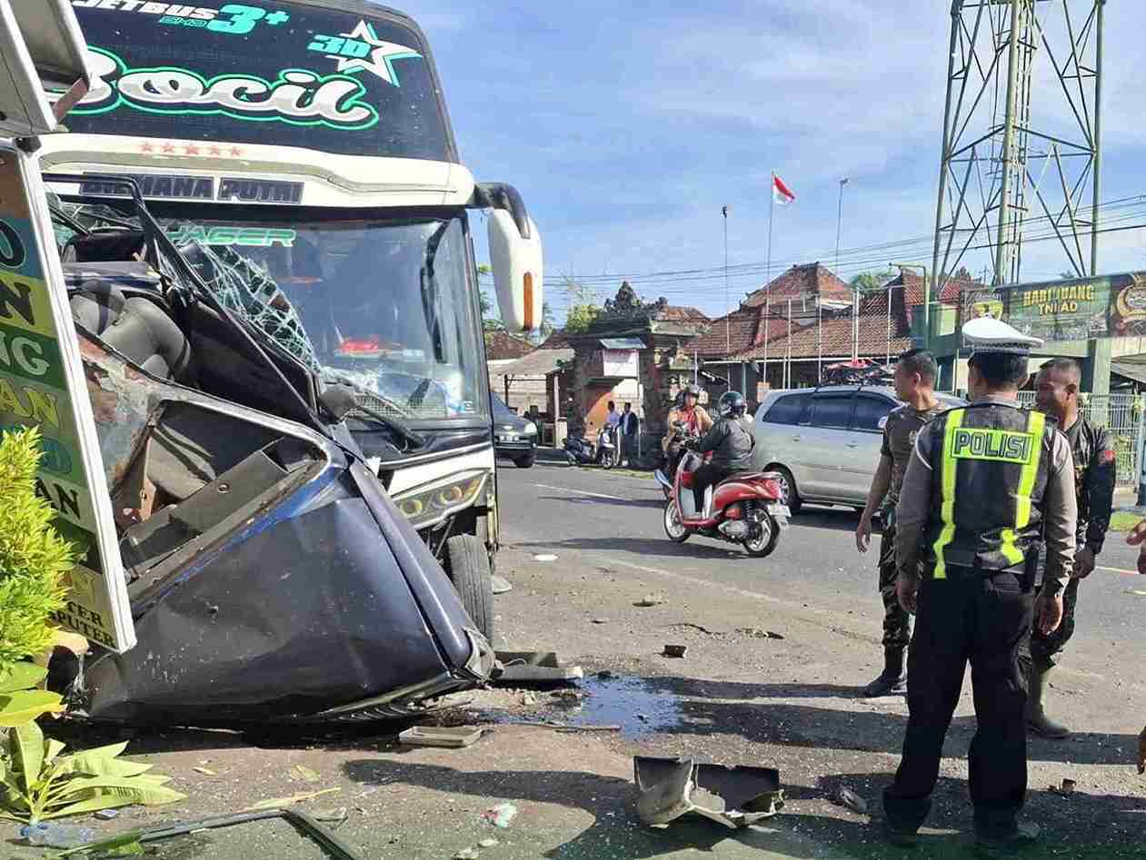 Insiden ini melibatkan Bus PT Singa Raja Putra dengan nomor polisi BE 7065 IU yang tengah membawa penumpang, serta satu unit mobil Toyota Kijang bernomor polisi DK 1183 AA.