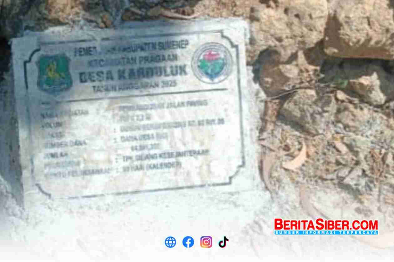 BERITASIBER.COM | SUMENEP – Dugaan penyimpangan dalam penggunaan Dana Desa kembali mencuat di Kabupaten Sumenep. Kali ini, warga Dusun Reng Perreng, Desa Karduluk, Kecamatan Pragaan, mempertanyakan kejelasan proyek pembangunan jalan paving yang didanai melalui Anggaran Dana Desa (ADD) Tahun 2025.