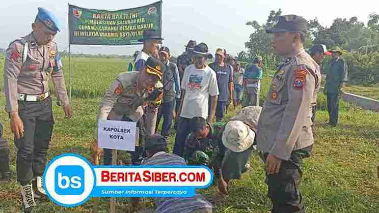 BERITASIBER.COM | LAMONGAN – Kapolsek Lamongan Kota, Kompol M. Fadelan. SH beserta anggota Polres Lamongan turut serta dalam kegiatan Karya Bakti TNI.