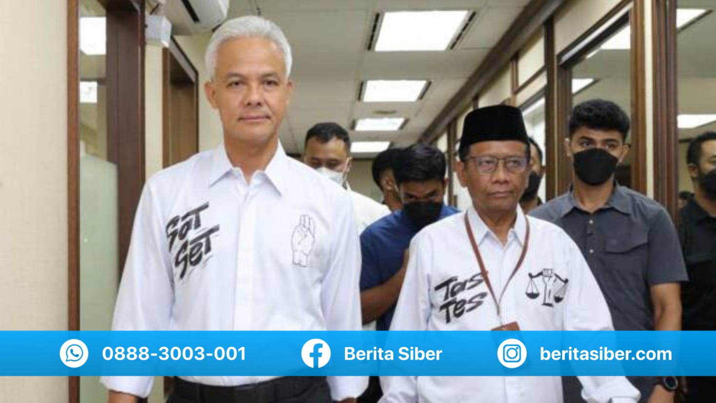 Paslon nomor urut 3 itu lebih dulu mendatangi Posko Tim Pemenangan Nasional (TPN) di Gedung High End Kebon Sirih, Menteng, Jakarta Pusat, Selasa (12/12/2023). Diawali Mahfud MD tiba di lokasi sekira pukul 17.30 mengenakan kemeja putih bertuliskan “Tas-Tes”. Selang 15 menit kemudian disusul kedatangan Ganjar yang mengenakan kemeja serupa bertuliskan “Sat-Set”.