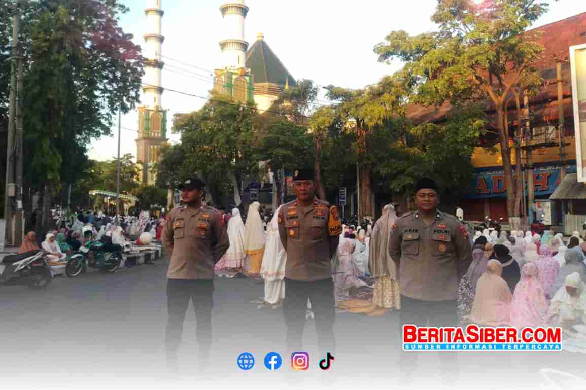 Kapolsek Lamongan Kota beserta personil pengamanan telah menyiapkan langkah-langkah preventif dengan mengatur arus lalu lintas agar kegiatan ibadah berjalan tertib dan khidmat.