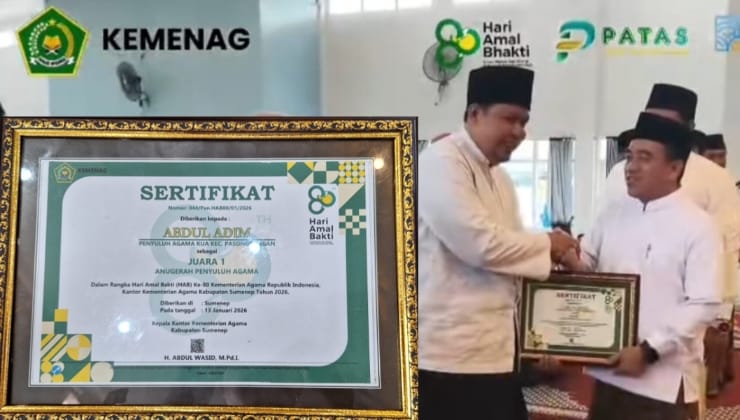 Dalam resepsi yang digelar di Graha Wicaksana Abdi Negara, Selasa (13/1/2026), Kemenag Sumenep memberikan Anugerah Penyuluh Agama kepada figur yang dinilai menghadirkan perubahan nyata di tengah masyarakat.
