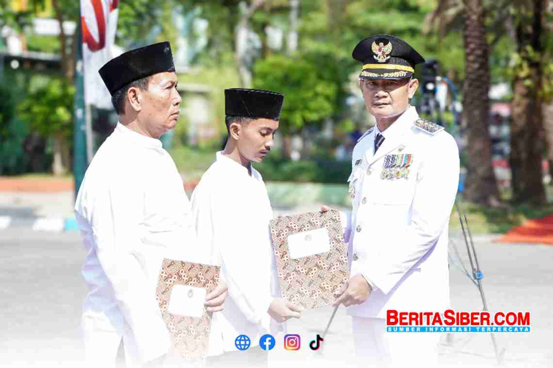 BERITASIBER.COM | LAMONGAN – Pemerintah Kabupaten Lamongan memperingati Hari Ulang Tahun ke-80 Republik Indonesia dengan cara yang penuh makna. Usai pelaksanaan upacara bendera di Alun-Alun Lamongan, Minggu pagi (17/8), Bupati Lamongan Yuhronur Efendi menyerahkan tali asih kepada para veteran, eks narapidana terorisme (eks-napiter), serta remisi bagi warga binaan Lapas Kelas II B Lamongan.