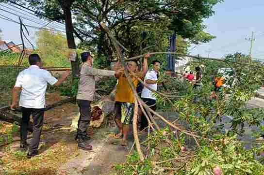 BERITASIBER.COM | LAMONGAN – Polsek Pucuk mengevakuasi sebuah pohon berukuran besar yang tumbang di Jalan Poros Babat Lamongan, Rabu (25/9/2024) Pagi.