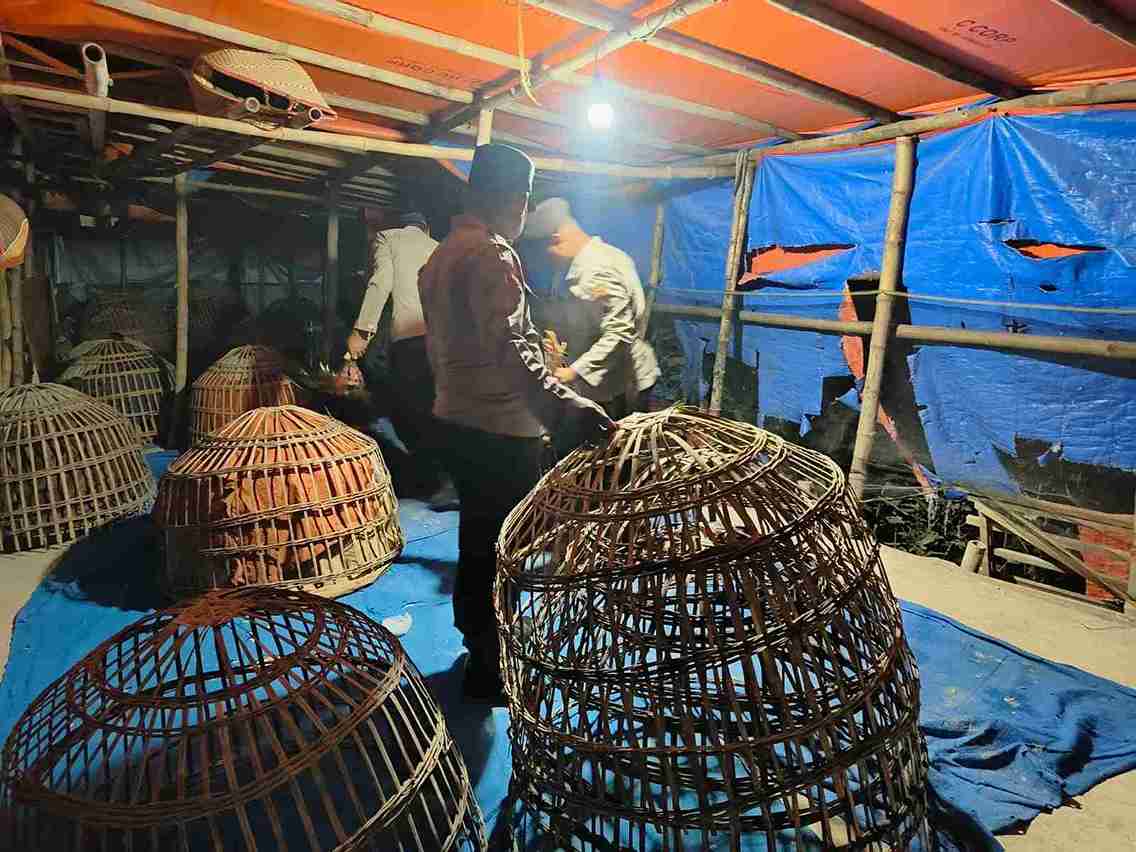 Dalam operasi tersebut, petugas berhasil mengamankan sejumlah barang bukti berupa tiga sangkar ayam, dua ekor ayam jago, satu alat adu ayam (bandang), dan satu kiso (wadah ayam).
