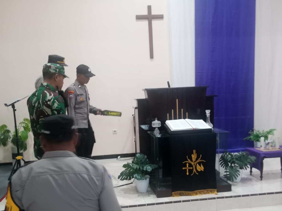Sebelum pelaksanaan ibadah, petugas pengamanan melakukan sejumlah langkah antisipatif, di antaranya pengecekan area gereja, pemantauan situasi lingkungan sekitar, serta pemeriksaan terhadap para jemaat yang hadir. Hal ini dilakukan guna memastikan situasi tetap kondusif dan mengantisipasi potensi gangguan kamtibmas.