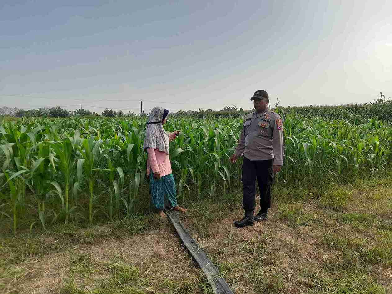Petugas Polsek Kembangbahu, Bripka Aseri dan Bripka Hartono, turun langsung bersama petani untuk melakukan pengecekan tanaman. Monitoring ini bertujuan memastikan tanaman jagung tumbuh optimal serta mengidentifikasi kendala yang dihadapi petani dalam proses budidaya.