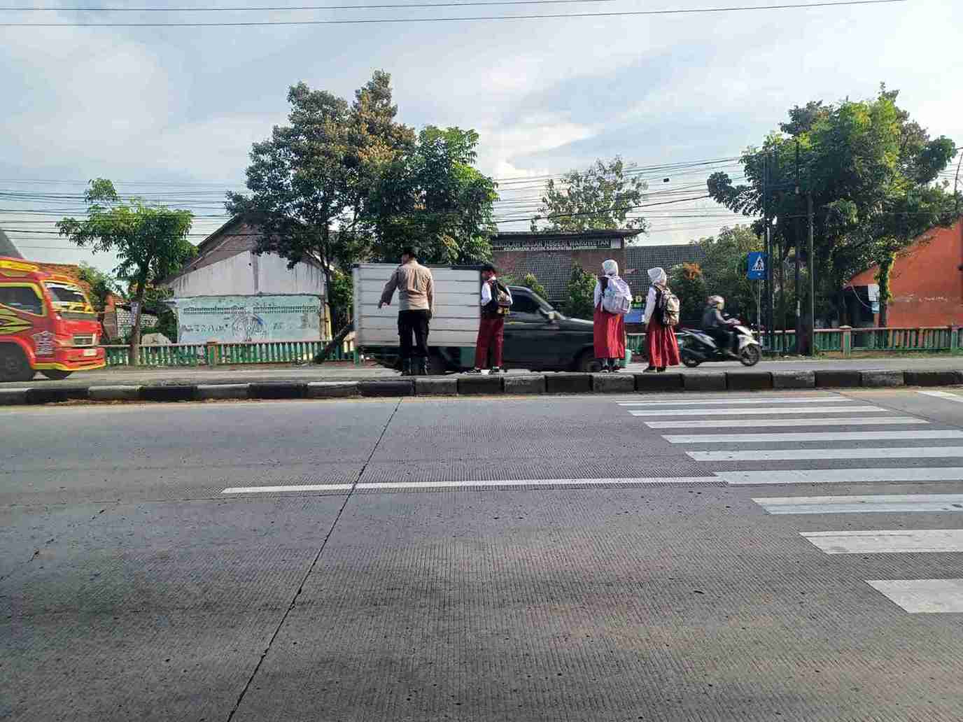 Selain melakukan pengaturan kendaraan, petugas di lapangan juga membantu menyeberangkan para pelajar yang hendak masuk sekolah. Kehadiran polisi di depan sekolah mendapat sambutan positif dari orang tua maupun pihak sekolah karena dinilai sangat membantu keselamatan anak-anak.