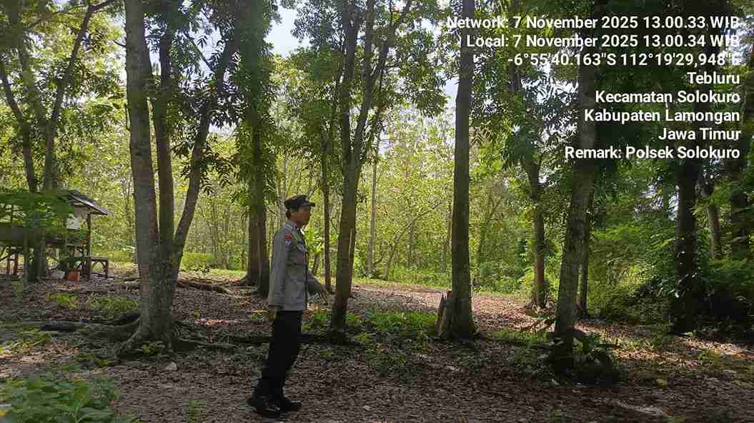 BERITASIBER.COM | LAMONGAN – Dalam rangka menjaga keamanan lingkungan dan mencegah terjadinya bencana alam, Polsek Solokuro Polres Lamongan Polda Jawa Timur melaksanakan patroli Karhutla (Kebakaran Hutan dan Lahan) di wilayah hutan Kecamatan Solokuro, Kabupaten Lamongan.
