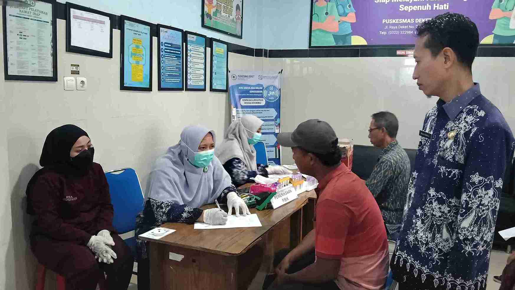 Perwakilan Puskesmas Deket, Muhammad Nukun, menjelaskan tahapan pemeriksaan yang dilaksanakan diantaranya pemeriksaan fisik, pemeriksaan laboratorium (tes darah), pemeriksaan EKG (Elektrokardiogram), pemeriksaan Rontgen, pemeriksaan Jiwa.