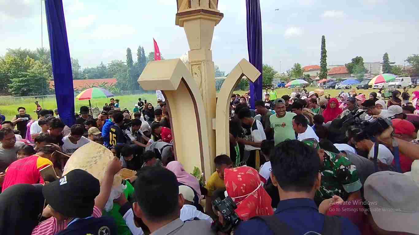 Suasana kemeriahan pecah ketika prosesi rebutan dua gunungan wingko dimulai. Warga dari berbagai usia berebut ribuan potongan wingko yang tersusun membentuk gunungan raksasa, mencerminkan betapa kuatnya kecintaan masyarakat terhadap jajanan tradisional khas Babat tersebut.