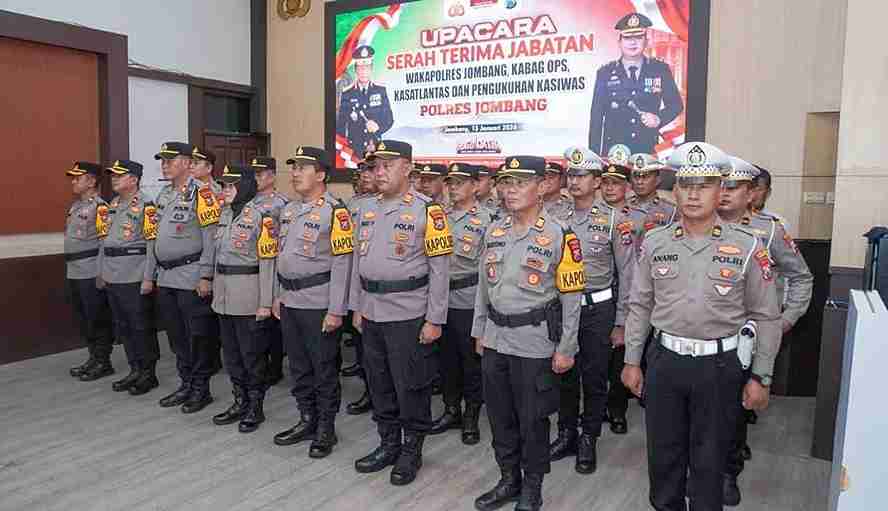 BERITASIBER.COM | JOMBANG – Polres Jombang melaksanakan upacara serah terima jabatan (sertijab) sejumlah pejabat utama, termasuk Wakapolres, Kabagops, dan Kasat Lantas, serta pengukuhan jabatan Kasiwas, Kamis (15/1/2026). Kegiatan berlangsung khidmat di Ruang Jombang Command Center Mapolres Jombang.