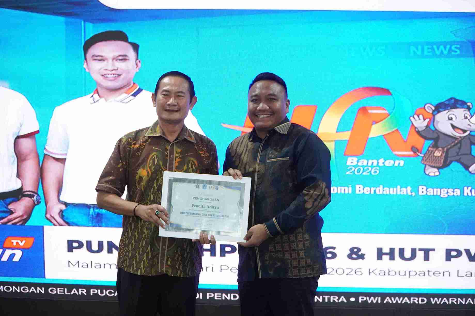 BERITASIBER.COM | LAMONGAN – Dunia kewirausahaan dan manajemen olahraga di Jawa Timur kini memiliki ikon baru yang patut diperhitungkan. Pradita Aditya, pemilik PT Duta Merpati Indonesia sekaligus Direktur Bisnis Persela Lamongan, resmi menerima penghargaan sebagai Tokoh Muda Inspiratif Bidang Bisnis dan Olahraga dalam ajang Puncak Peringatan Hari Pers Nasional (HPN) 2026 dan HUT ke-80 PWI di Pendopo Lokatantra, Minggu (8/3/2026).