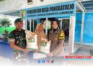 Bhabinkamtibmas Polsek Lamongan Kota Berikan Pengamanan Penyaluran Bantuan Pangan Beras di Desa Pangkatrejo