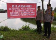 Cegah Risiko Tenggelam, Polsek Lamongan Kota Pasang Banner Larangan Bermain di Kolam Retensi Sidokumpul