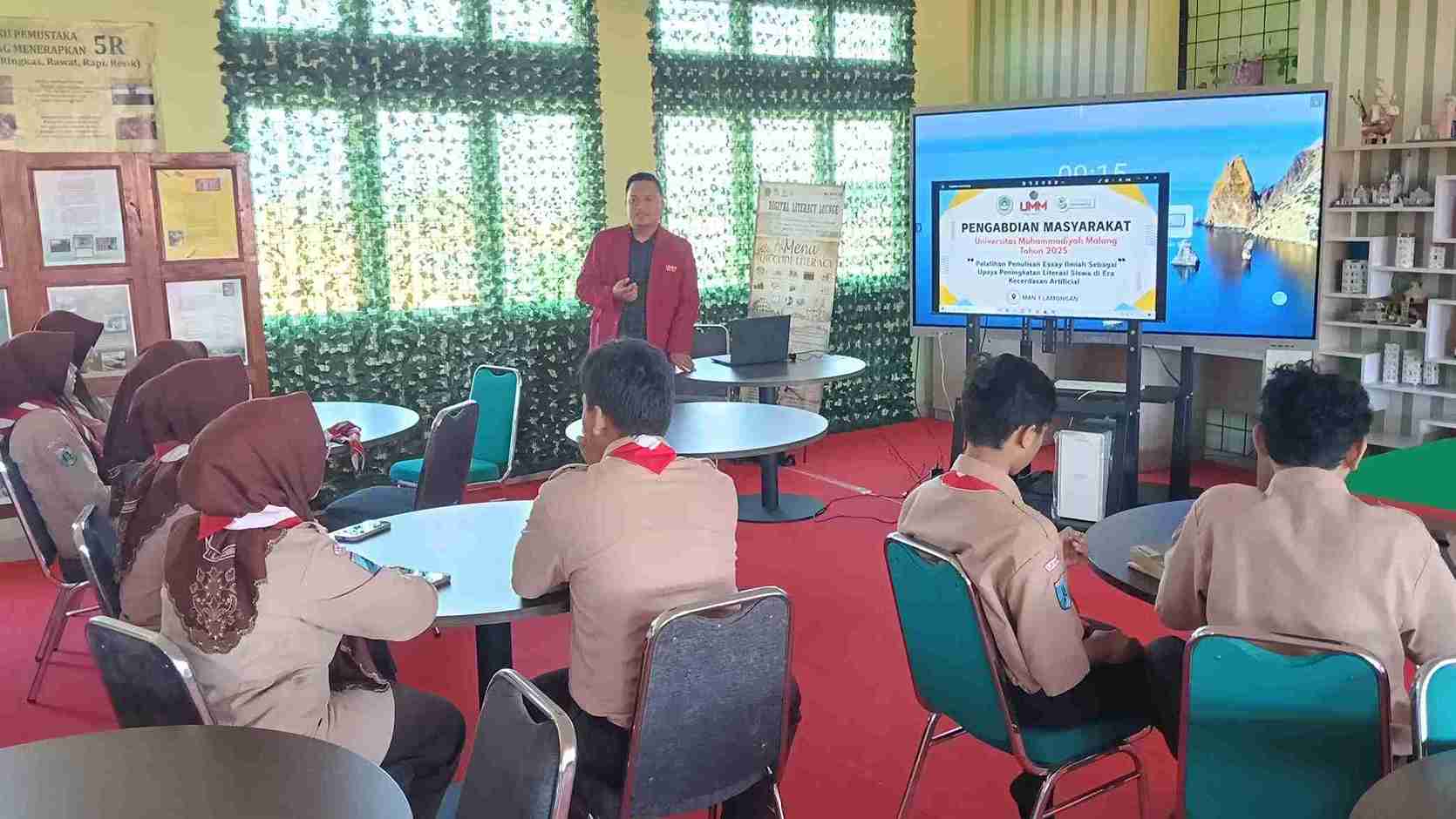 Pada Jumat (12/12/2025), M Nur Ali Zulfikar, mahasiswa UMM, memberikan pelatihan penulisan esai ilmiah berbasis kecerdasan artifisial (AI) kepada siswa Madrasah Aliyah Negeri (MAN) 1 Lamongan.