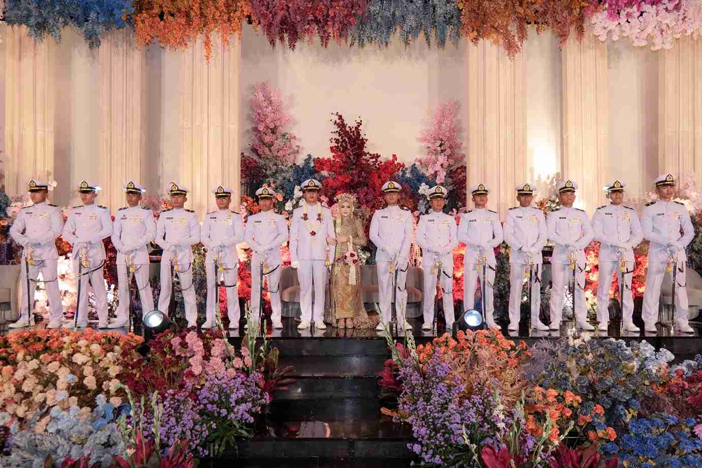 Salah satu momen yang paling menarik perhatian dalam acara tersebut adalah pelaksanaan tradisi Pedang Pora. Tradisi khas militer ini menjadi simbol penghormatan bagi mempelai pria sebagai perwira TNI, sekaligus menggambarkan perjalanan baru dalam kehidupan berumah tangga. Prosesi Pedang Pora berlangsung dengan khidmat, diiringi formasi barisan prajurit yang membentuk gerbang pedang sebagai simbol kehormatan.