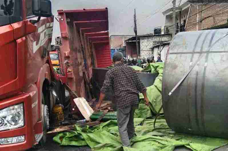 Kejadian bermula ketika truk tersebut terkejut oleh sebuah kendaraan kecil yang menyalip dari arah berlawanan, sehingga sopir truk segera melakukan pengereman mendadak.