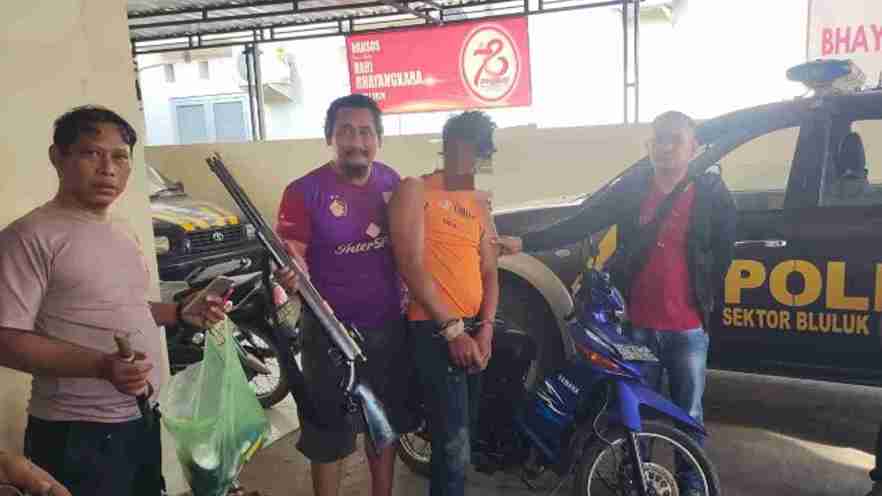 Saat patroli, petugas Polsek Bluluk melihat dua orang yang mengendarai sepeda motor dengan membawa barang mencurigakan yang dibungkus dalam sak berwarna biru.