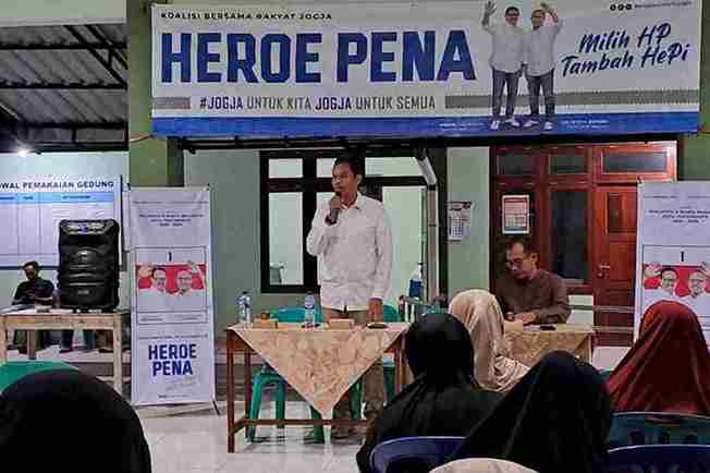 BERITASIBER.COM | YOGYAKARTA – Puluhan warga dari enam RT di RW 12 Mujamuju, Umbulharjo, Yogyakarta, antusias saat mendengarkan paparan juru kampanye Paslon Heroe Supena, Noor Arief Hartanto dan Edi Sukrisno, di Pendopo RW 12, Mujamuju, Rabu (2/10/2024) malam.