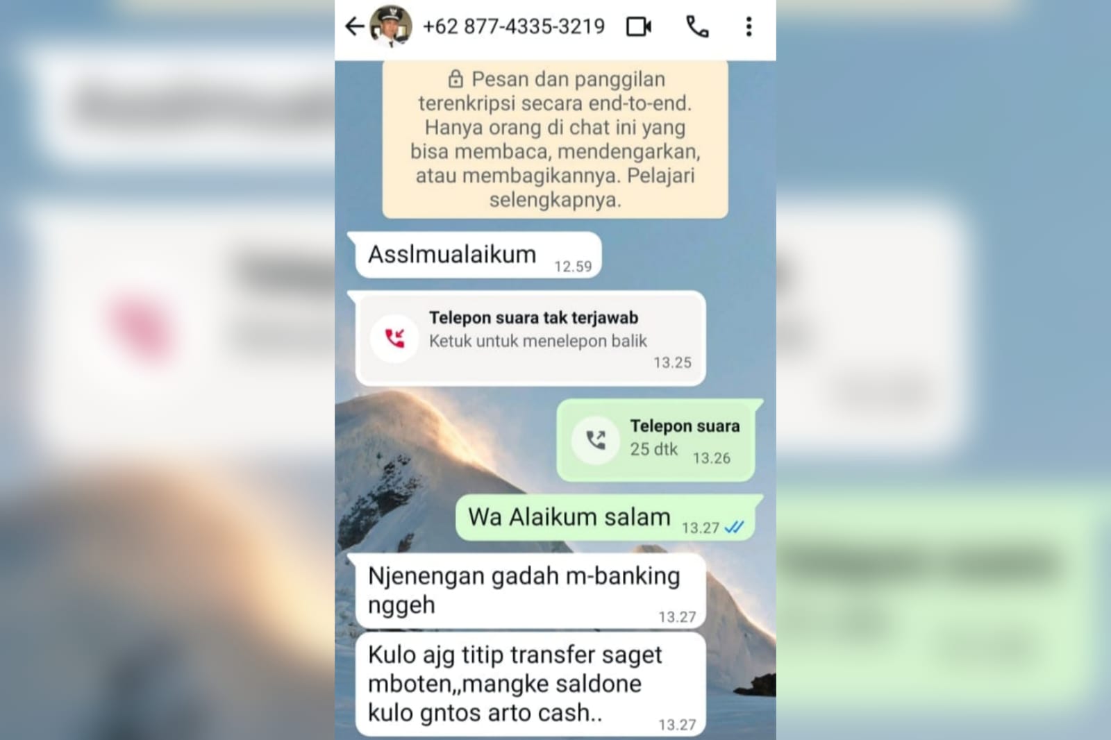 Dalam melancarkan aksinya, pelaku menggunakan nomor 087743353219 berpura-pura menjadi Kades dan meminta warga mentransfer sejumlah uang ke rekening tertentu.