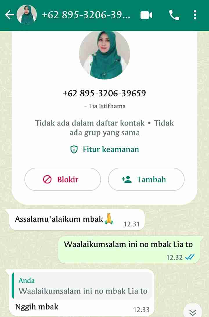 Namun karena tidak ada kejelasannya, korban penipuan tersebut mencoba menghubungi nomor asli dari Lia Istifhama. Dan diketahui ternyata nomor yang menghubungi dirinya itu merupakan akun palsu yang mengatasnamakan Lia Istifhama.